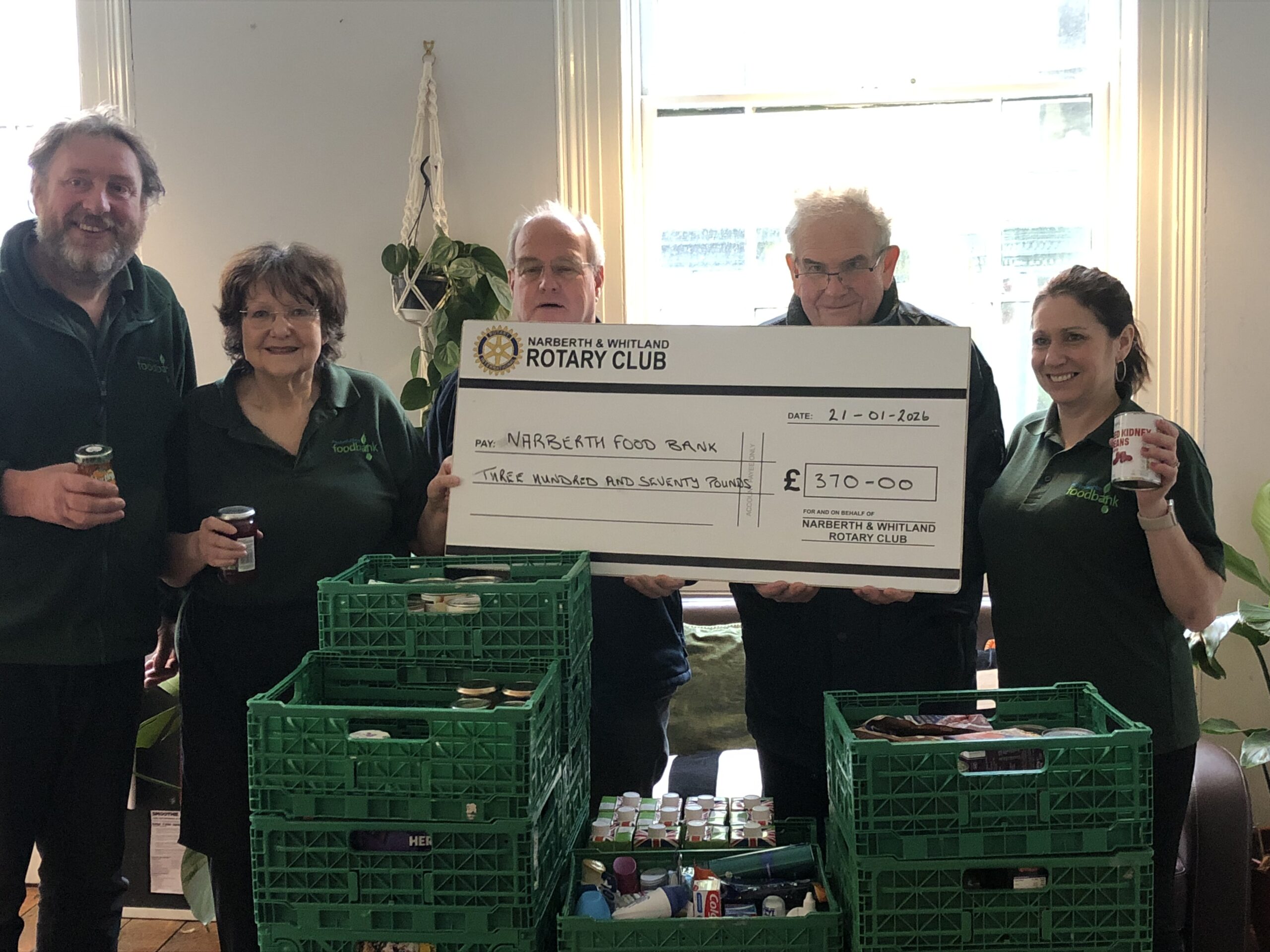 Volunteers at Narberth Food Bank were grateful to receive a cheque for £370 which was presented by Narberth and Whitland Rotary President, Robin Bradbury. The money was raised by Bucket Collections at Narberth RFC on Saturday 13 December and the Santa Run in Narberth on Sunday 14 December.